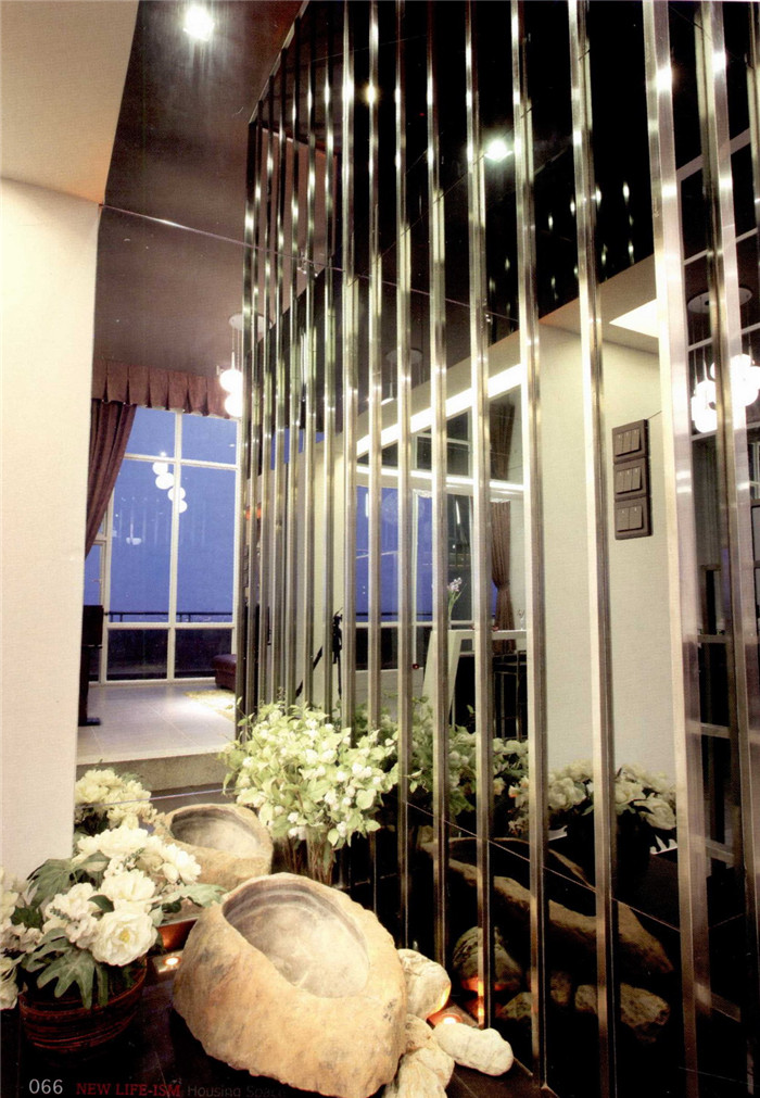 在整個會所空間設計過程中,設計師使用大量鏡面玻璃,使原本較小的空間從視覺上得到放大,考慮到大面積地使用玻璃,會讓設計顯得平淡,設計師在空間中又融入了許多不銹鋼的元素。