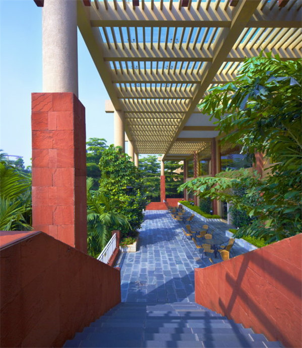 酒店大宴會(huì)廳可以分成7個(gè)中型宴會(huì)廳,也可以做展覽、表演等用途,而會(huì)議中心外的廣場既可作冷餐會(huì)也可作臨時(shí)展場用。整個(gè)建筑群沐浴在和煦的陽光中,它把城市的喧鬧與壓力完全隔絕,為游客們創(chuàng)造了一種新型體驗(yàn)式度假方式。