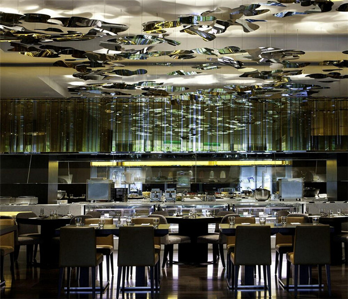 質感獨特。。臺北寒舍艾麗精品酒店的迎賓大廳面積不足60米,卻挑高近9米,整個空間由多層次,多質感的暖灰色構成,局部黑色鏡鋼點綴,純凈而優(yōu)雅:主角當屬漫天飛舞的無數(shù)張被狂風驟然吹起的白紙,當然這正是一組藝術家為酒店精心設計的藝術燈光裝置,從不同的角度觀看均有不同的感受。