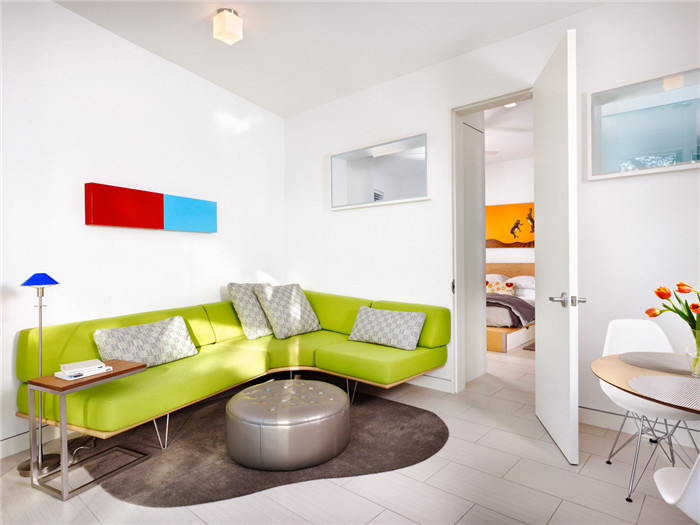 酒店空間設計主色調(diào)比較清新淡雅,以白色以及其他亮色(綠色,藍色等)為主,把客房打造的極為清新舒適,讓入住的客人走進室內(nèi)便能立刻感覺到清新氣爽、雅致大方。每一間客房都采用了Eames Plastic Molded Chair,很受歡迎的一種精巧座椅。這種酒店設計尤其受到一些有藝術感的客人的喜歡。