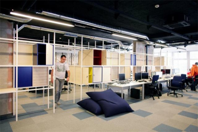 新的辦公室設計不僅打造了一個多功能開放性的空間,且反應了公司的高科技商業(yè)性質和文化。辦公室空間設計與天然經(jīng)濟的材料結合在一起。這也是為什么架子和地板讓我們聯(lián)想到像素和計算機硬件組件,然而在它們的設計中我們使用的材料卻是混凝土,鋼鐵和冷杉以及原色:紅色,黃色和SPAN-藍。