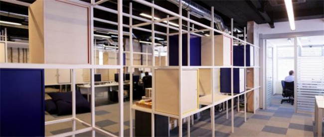 室內(nèi)的屏風隔斷把各區(qū)域分割開來,同時也吧整個辦公空間鏈接起來。這樣的隔斷設計可以隨具體情況進行更改,很是具有靈活性。顯示器可以被安裝在屏幕上,連接吧臺的模塊化方法讓我們可以擴展或縮短基本方格,增加新的開口,關閉現(xiàn)存的開口等。