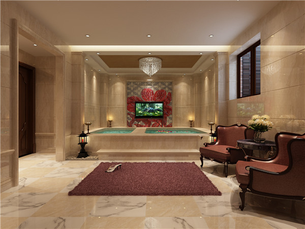 以清新、淡雅的色彩作為浴室設計的主色調,采用歐式古典花紋瓷磚搭配乳白色浴池,呈現整個空間的干凈明生活恬淡,歲月靜好,慢品人生。尤其值得一提的是影音室,不但有良好的吸音隔音功能,而且體現了現代的科技,星光頂面給室內增加了時代的玄幻感。