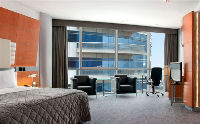 迪拜河希爾頓酒店,是一座標(biāo)志性建筑,配有現(xiàn)代化的裝飾和舒適典雅的客房和套房。酒店提供時尚和寬敞的住宿,房間總數(shù)為150間。所有客房均配備了符合人體工程學(xué)的椅子和落地窗。在高級的豪華或行政房里,客人可觀賞到270度全景。45平方米的高級行政客房位于酒店頂層,客房風(fēng)格現(xiàn)代而新穎,色調(diào)清爽而舒緩,配有一張?zhí)卮蟠?,能欣賞迪拜河美景。