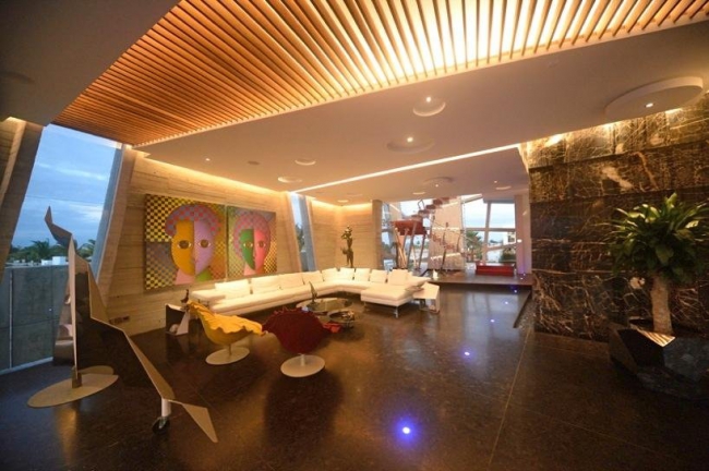 設(shè)計(jì)師選擇了一個(gè)大的隱形窗戶,能像室外敞開。不規(guī)則的外形、隨意堆砌的墻體和意想不到的玻璃變形窗體使室內(nèi)外巧妙貫通,帶來欣賞坎昆運(yùn)河與城市風(fēng)光的絕佳視角?;炷痢⒒◢弾r和木頭的混合材質(zhì)使建筑以一種前衛(wèi)的風(fēng)格保持各部分的平衡與穩(wěn)定。