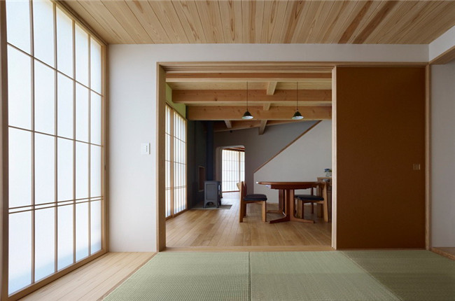 在該項(xiàng)目中,設(shè)計(jì)師盡可能的不破壞當(dāng)?shù)氐沫h(huán)境,同時(shí)使用建筑手段借助自然中的陽光和清風(fēng)以達(dá)到平衡室內(nèi)的效果。它通過日本特有的寬大推拉門,將松散的自然景觀以人工再造的方式進(jìn)行緊湊的組合,利用推拉門半透明的材質(zhì)獲得柔美的光線。將門打開,屋外開闊的風(fēng)景進(jìn)入視野,深入屋中,善加利用自然,必將會有令人驚喜的效果。