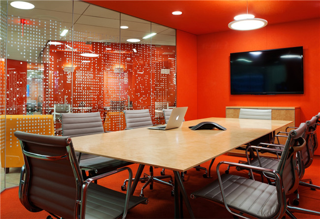 每個(gè)水晶房都有其獨(dú)特裝飾,可能由會(huì)議室的名字的大型字母來(lái)形成的形狀。也有可能在一個(gè)角落,水晶的語(yǔ)言用木頭來(lái)重新詮釋,設(shè)計(jì)的這個(gè)聚會(huì)空間可以容納65人進(jìn)行會(huì)議或者音樂(lè)表演。這些毫無(wú)規(guī)則的空間組成的辦公樓設(shè)計(jì)核心,都隱藏在水磨墻后面,上面會(huì)有一些不同時(shí)期的著名音樂(lè)大師抽象畫(huà)。