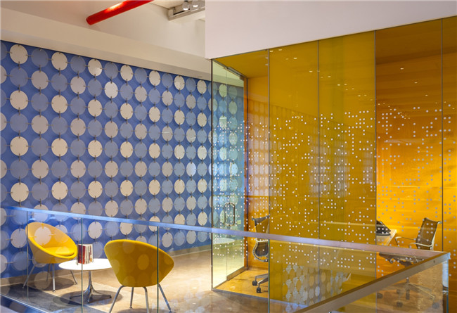 文章導(dǎo)讀:潘多拉媒體公司的新辦公樓位于曼哈頓的市中心,由于它是全球知名的媒體集團(tuán),因此,在其辦公設(shè)計(jì)中,為了保證信息溝通的順暢,開(kāi)放式的辦公室設(shè)計(jì)顯得尤為重要。在中心區(qū)域設(shè)計(jì)師通過(guò)大臺(tái)階將兩層相連,并且充分利用兩層樓的高度,放置了一個(gè)用半透明的圓形碟片組成的大屏幕,藍(lán)色的窗簾布通過(guò)鋁制鉤子優(yōu)雅地布置著。這些元素結(jié)合起來(lái)創(chuàng)造一個(gè)模糊的概念,為了突出室內(nèi)巨大的感覺(jué)。用大型LED燈泡做成的大樹(shù)圖案十分吸引眼球。