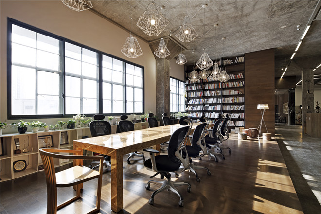 空間功能布局上,考慮陽光空氣等物理?xiàng)l件,把餐廳、圖書室、洗手間與集團(tuán)總監(jiān)室放入陽光最好的南面,西面放入娛樂空間與多功能室,其余的主管室配置在北面,手法上采用開場與玻璃的風(fēng)分割方式,讓日光直接進(jìn)入挑空的中央工作區(qū)域,在內(nèi)部建立一個(gè)自然的工作環(huán)境。
