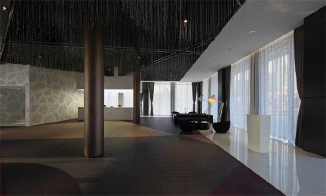 設計的靈感來自自然世界——融個各種自然元素把自然靈氣重現(xiàn)于這室內空間之中。天花的燈飾是點點繁星、鏡子帶來的幻象引領著來訪者的思緒與情感;墻壁模擬石頭的天然紋路,營造出沉穩(wěn)而神秘的氛圍;線條硬朗、著重結構的家具是設計師對自然的想象。