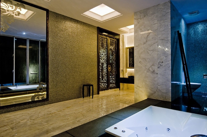 繼三間以東風傳統(tǒng)禪風作為釋腳的房型之后,第四間 203 房,迎來了時代的演進!精品旅館最重要的靈魂,莫過于一張張柔軟而個性獨具的睡床,紅白搭配的絲絨床俱,妝容高貴內(nèi)斂的性格與沈穩(wěn),以之為中心散開的,正是以大理石、訂制窗花、木皮、馬賽克、噴漆、鏡面等設計的時尚房型。