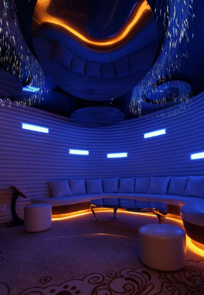 入得其中,現(xiàn)代材質(zhì)圍合而成的包房,LED燈光表現(xiàn)的流云,這樣亦古亦今的表現(xiàn)方式不覺得突兀,反而很容易融入。純正雕花梁柱與經(jīng)過(guò)精心打磨后的大理石地面形成一種有趣的互動(dòng),讓整個(gè)商務(wù)娛樂(lè)會(huì)所設(shè)計(jì)既得四合院精髓,又富有現(xiàn)代魅力。