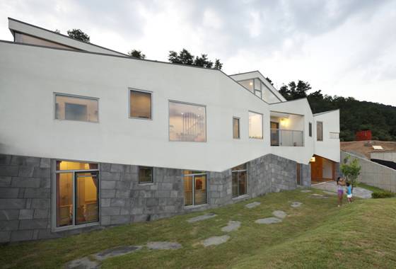 文章導(dǎo)讀:全景之屋位于韓國忠清北道。業(yè)主是一對教師夫婦,他們有四個可愛的孩子。業(yè)主的需求很特別,希望為孩子們建造一個學(xué)習(xí)、閱讀和玩耍的地方。別墅設(shè)計公司師根據(jù)業(yè)主的要求在房屋的室內(nèi)樓梯上大做文章,為孩子們提供一個舒適的家庭游樂場。