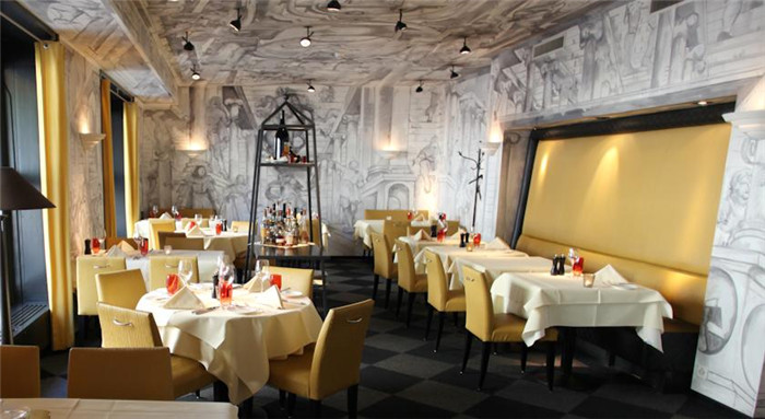 這般藝術(shù)氣息也體現(xiàn)在一樓的酒店餐廳。餐廳四壁布滿當(dāng)代畫作,十分醒目。如此酒店餐廳設(shè)計(jì)讓食客如身臨其境,仿佛在舞臺(tái)正中央,被歌劇演員與觀眾包圍。