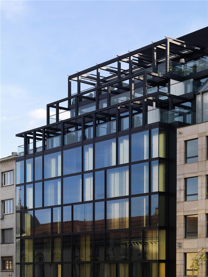 這是一個創(chuàng)意酒店空間設計典范。建筑底座僅僅采用了巖石的元素,與附近的建筑連貫起來。酒店外觀設計新穎,底座上方的建筑部分運用金屬網個框與玻璃的組合。固定的窗格設有可操作的矩形窗口,使新鮮空氣順利進入室內。酒店第二層的內墻用了具有可調節(jié)性的不透明板,方便調節(jié)室內外的關系。