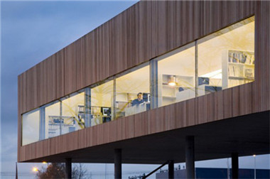 文章導(dǎo)讀:辦公樓北邊的外墻形成了一個(gè)緊湊的建筑構(gòu)造,建筑外部以交替的欄…