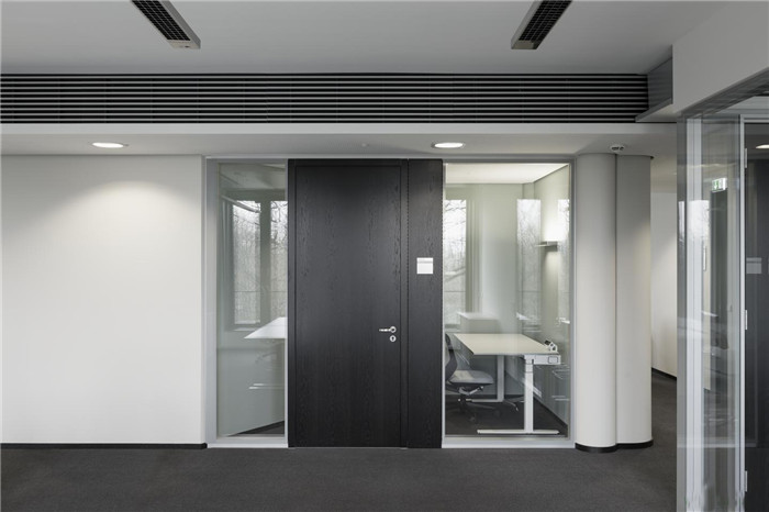 辦公樓的窗戶設(shè)計多樣化,與周圍的環(huán)境遙相呼應(yīng)。它既展現(xiàn)了建筑的宏偉大氣,又與周邊的舊建筑交輝相應(yīng)。辦公大樓的入口處也是由寬大的玻璃構(gòu)成。大樓底層設(shè)有食堂和餐廳,員工可以選擇性就餐。