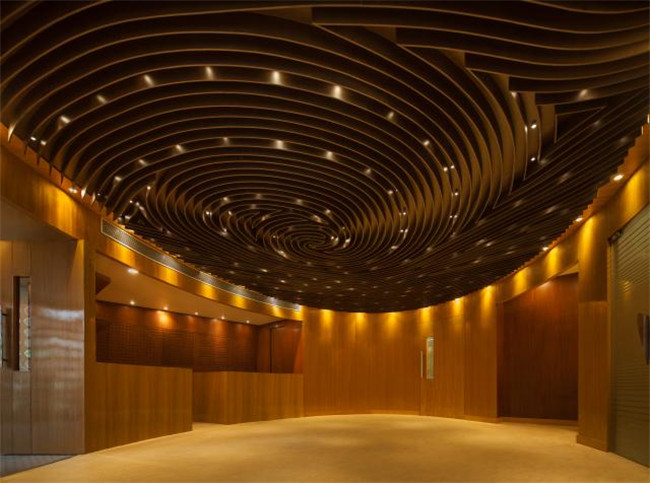 辦公樓室內(nèi)空間設(shè)計(jì)大膽使用建筑體量和植入城市來(lái)提高自身知名度或訊息。為彰顯企業(yè)的地位,使用了指紋這一彰顯身份的元素。穿孔的漂浮的紅色幕墻上標(biāo)有公司的品牌標(biāo)識(shí),辦公樓具有極強(qiáng)的視覺(jué)感。