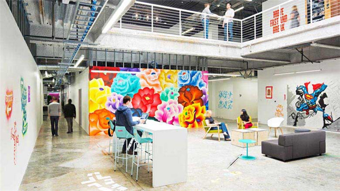 Facebook加州總部開放區(qū)域的家具不拘一格,為了保持新鮮感,還可以經(jīng)常條換位置。其中很大部分都有一種大學(xué)宿舍的感覺。占據(jù)網(wǎng)站的主色調(diào)Facebook藍(lán)在實(shí)際場(chǎng)地中則被避免使用。墻上還有很多或?qū)懟虍嫷臇|西。