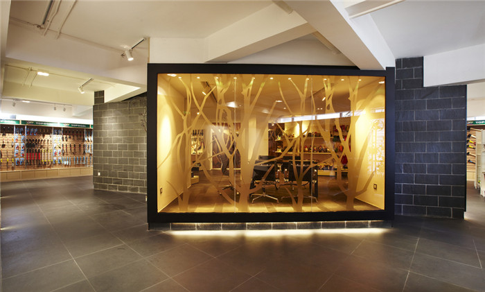 細節(jié)設計是對建筑形態(tài)和空間認知方式的深化,透過材質加以詮釋。此次辦公室設計運用鐵件、石材、玻璃、鏤空木隔柵等,將材料最本質的肌理經創(chuàng)意提煉,并呈現(xiàn)出來。讓人觸及該空間時能體驗到材質經冶煉后,體現(xiàn)原生態(tài)的價值感。