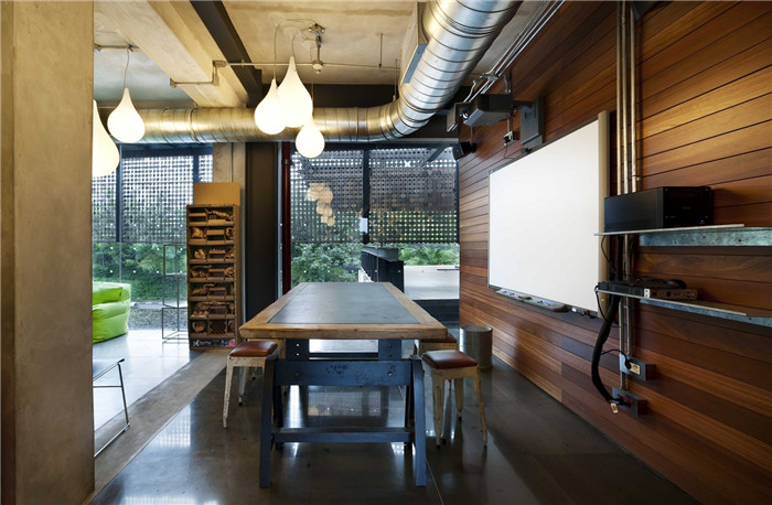 辦公樓的各項設(shè)計注重實用性,方面后期維護(hù),風(fēng)格經(jīng)典。辦公樓墻壁采用的是混凝土,上面是夾層玻璃,利于室內(nèi)采光。而天花板的混設(shè)計則很少大方,布置合理。懸臂式樓梯也很有特點,以鋼絲為扶手,鋼梁外部用天然實木包層,周圍還設(shè)有燈具,可以起到裝飾作用。