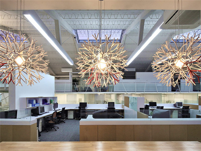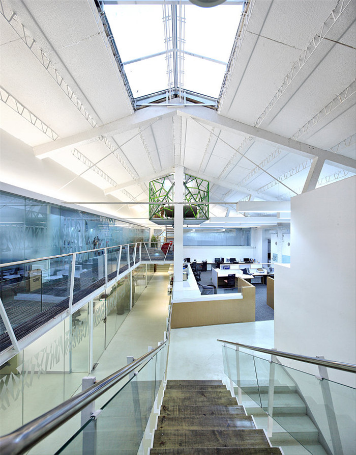 新的改造使原有的建筑豐富多彩。根據(jù)原有建筑的空間特點(diǎn)和構(gòu)造,設(shè)計(jì)師最大限度的進(jìn)行全方位引進(jìn)自然光線,增加了室內(nèi)的照明效果,也有利于能源的節(jié)約。建筑也有效的利用了資源,節(jié)水節(jié)材,全面打造了一個(gè)綠色的辦公環(huán)境。