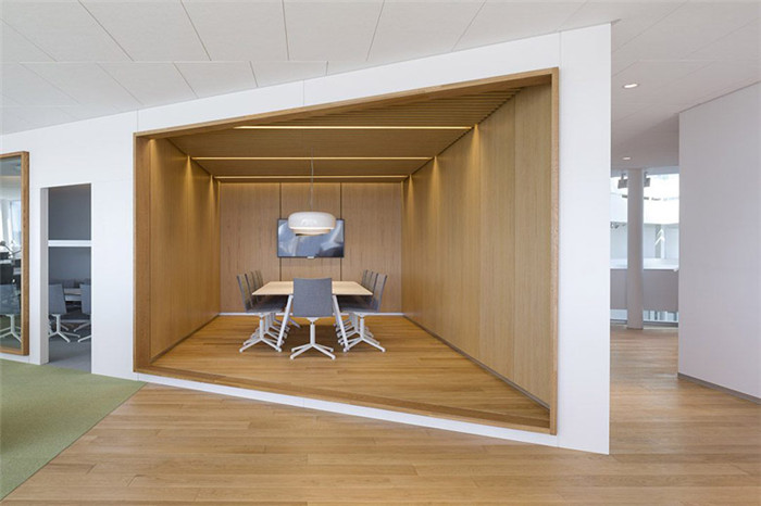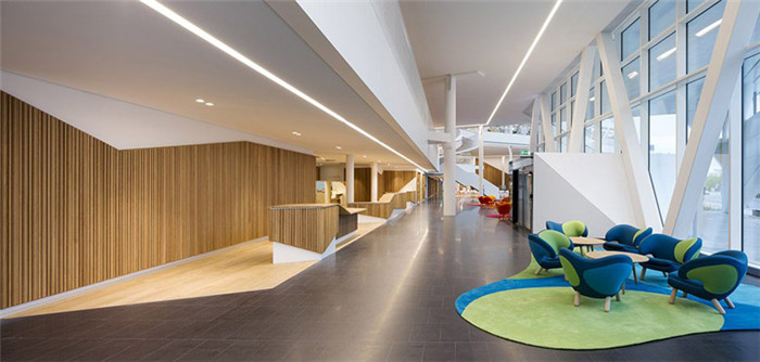 透明玻璃將自然光線引進(jìn)室內(nèi),也展示了公司“開放性”的企業(yè)文化。大樓底層設(shè)有會議室、接待室和餐廳燈區(qū)域,完善了辦公室的功能。且各個區(qū)域結(jié)構(gòu)緊密,有利于節(jié)約資源、能源。