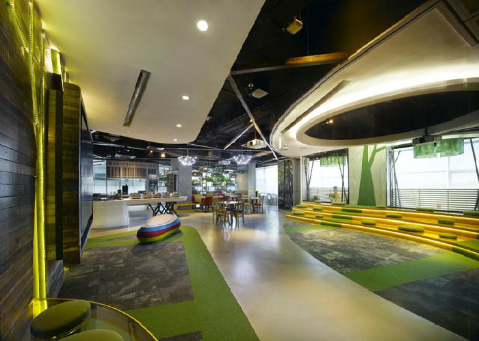 谷歌辦公室處處讓人驚喜,里面設(shè)有籃球場(chǎng)、美食區(qū)和不間斷地零售。地板為特制主題地板,很有個(gè)性。其位于吉隆坡的辦公室也很有特色,特制的天花板,上面“長(zhǎng)出”攀巖植物。森林壁紙讓人感覺(jué)像在雨林世界一般,神奇夢(mèng)幻。