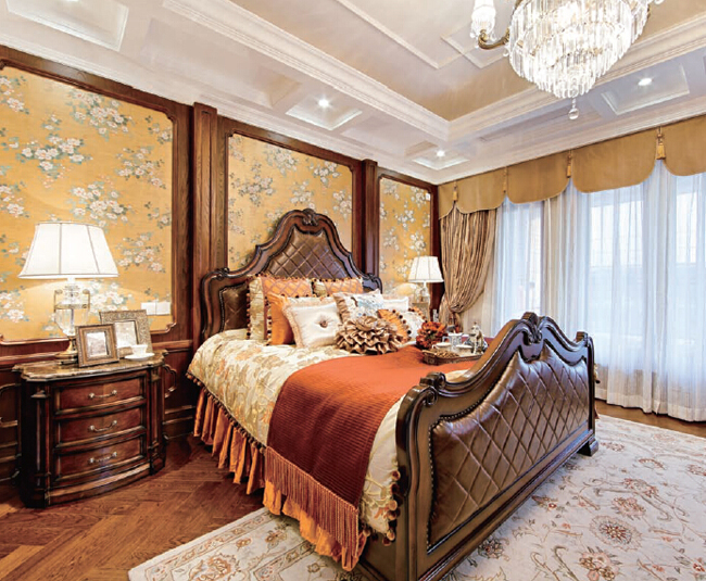 在居室內的色彩構成中建議一定不要超過三個色彩的框架,而這三個框架要按照60 ∶ 30 ∶ 10 的原則進行色彩比重分配,也就是主色彩∶次要色彩∶點綴色彩的比例。比如室內空間,墻壁用60% 的比例,家具、床品、窗簾就占30%,那么10% 就是小的飾品和藝術品,點綴色雖然是占比最少的色彩,但往往起到最重要的強調作用,這個法則是黃金法則,在任何時間任何地方都可以使用。