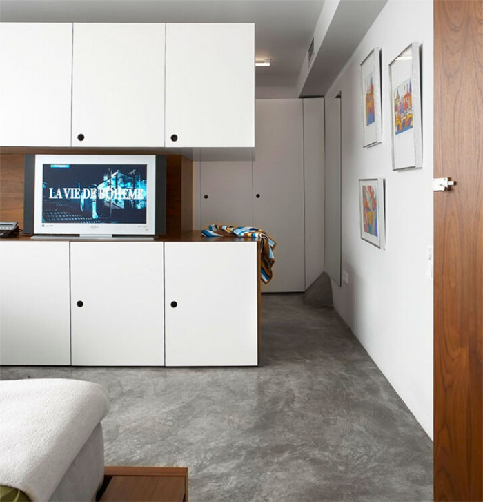 整個自建房裝修設(shè)計中,玄關(guān)上緣以造型流線將冷氣出風(fēng)口巧妙修飾于內(nèi),傳達(dá)出韻律弧角的視覺脈動。以一脈延續(xù)的俐落沁白,將冰箱、吧柜、廚具納入完整的色系,透過對比錯置的吸頂?shù)鯚?,襯托出轉(zhuǎn)趨和緩的視覺色溫。創(chuàng)造一個無拘漫伸的純透尺度,啟發(fā)簡約生活的美學(xué)態(tài)度。