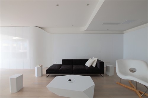 設(shè)計(jì)師又以優(yōu)美的曲線貫穿其不同區(qū)域,讓家有并非一成不變的感覺。風(fēng)格上采用了硬朗極簡的白色主義,立體化的家具和擋隔設(shè)計(jì)使空間更加凸顯多維化。